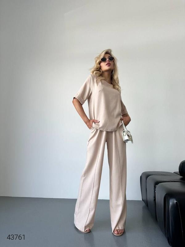 ЦВЕТ: Белый МАТЕРІАЛ:лён СЕЗОН:весна/ лето СТИЛЬ:полный ПРИМЕЧАНИЕ: БЕЗ застежки ПАРАМЕТРИ МОДЕЛІ НА ФОТО:88-59-89 см РАЗМЕР МОДЕЛИ НА ФОТО:42РИСТ МОДЕЛИ НА ФОТО:169 О ТОВАР Костюм женский льняной. Кофта с коротким рукавом, широкие брюки. Есть карманы. Тканина: льон. Размеры: 42,44,46,48 Замеры: S (42) Сорочка: Ог- 96 см; Длина изделия - 59 см; Длина рукава -26 см. Штани: От- 64-92 см; Обхват стегон – 104 см; Длина изделия -106 см; М (44) Сорочка: Ог- 100 см; Длина изделия - 60 см; Длина рукава -26 см. Штани: От- 70-98 см; Обхват стегон – 108 см; Длина изделия -106 см; L (46) Сорочка: Ог- 108 см; Длина изделия - 62 см; Длина рукава -26 см. Брюки: Вот- 74-102 см; Обхват стегон – 112 см; Длина изделия -106 см;