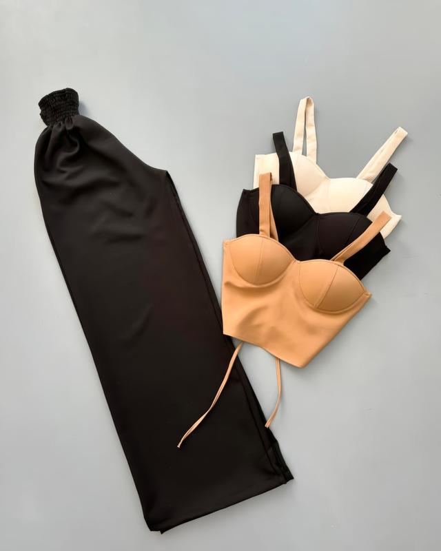 Костюм Мод. 568 ▫️ Тканина: костюмка ▫️ Цвет: черный, беж, мокко ▫️ Размер: 42-44, 44-46 Цена: 599грн Очень интересная модель – костюм двойка (топ + брюки). Топ укороченный с чашками, сзади на завязках, брюки на высокой посадке, пояс на резинке. Этот фасон очень красиво смотрится на фигуре. Классный вариант как для отдыха с друзьями, так и для любых праздников. - Топ ОГ 80-90/84-94 см Высота по боку 16 см - Штани ********** см ОБ 100/104 см Длина по боку 104 см Длина шаг/шва 72 см