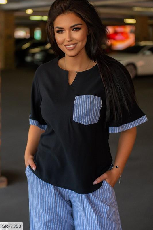 Прогулочный костюм GR-735 Размеры: 46-48, 50-52, 54-56 Двійка кофта штапель, штани льон.
