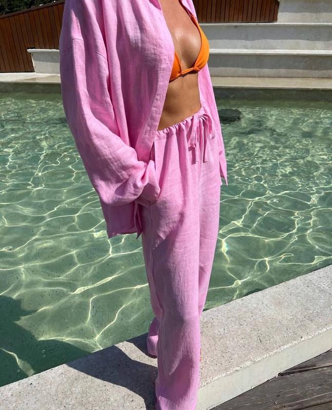 Костюмчик 2йка 🎨Цвет: розовый, черный 📐Размер: 42-46, 48-52 🪡Тканина: льон