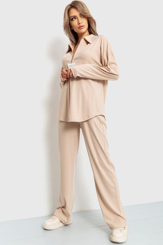 Костюм женский в рубчик повседневный,высокой посадки Размеры:M, L Состав: Трикотаж Материал: 65% хлопок, 30% полиэстер, 5% лайкра