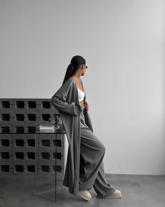 Новинка 🔥 Костюм 🔥 Арт.256 Цена: 899 грн Ткань: плотный рубчик Размер: универсальный 42-46 Цвет: серый, молоко Костюм который создан для тебя 🩷 штаны палаццо и такой уютный кардиган, в который хочется завернуться 💔