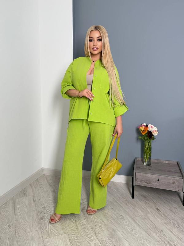 ‼️‼️‼️ НОВИНКА ‼️‼️‼️ 💙💛Сделано в Украине💙💛 Универсальный, стильный костюм, который подходит для повседневных образов и для тех кому важна легкость и комфорт.Палитра цветов на любой вкус. ✅Костюм двойка ✅Модель 1958 ✅ Полочка в течение 2-5диб 🌸 по предоплате 200 грн. перед заказом уточняйте наличие и условия 💕 ✅Тканина: льон-жатка ✅Размеры: 48-50,52-54,56-58,60-62 Цвета:розовый,салатовый, белый,черный,джинс, голубой, лаванда,шоколад, бежевый,хаки Замеры: Длина брюк-110 см. Длина рукава-60 см. ✅48-50 Объем груди-106 см. Объем талии-116 см. Длина рубашки-65 см.~77 см Штани: Объем талии (резинка)- 74 см.~112 На см. Объем бёдер -116 см. ✅52-54 Объем груди- 114 см. Объем талии-122 см. Довжина сорочки-65 см.~77 см. Штани: Объем талии (резинка)-80 см.~118 см. Об’єм стегон- 126 см. ✅56-58 Объем груди - 126 см. Объем талии-134 см. Довжина сорочки-68 см.~78 см. Штани: Объем талии ( резинка)- 88 см.~126 см. Объем бёдер - 134 см. ✅60-62 Объем груди-132 см. Объем талии-142 см. Довжина сорочки-68 см.~78 см. Штани: Обʼєм талії(резинка)-96 см.~136 см. Обʼєм стегон- 142 см