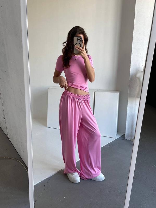 🔸Костюм (топ+палаццо) ▪️Тканина: натуральна віскоза (Туреччина) ▪️Розмір: 42-46 (onesize) ▪️Колір: чорний, барбі, шоколад, білий Супер якість за низькою ціною🔥 💬Стильна база для весняних та літніх прогулянок: ідеальний крій, базові кольори та натуральна тканина. Топ та штани палаццо вільного крою, висока посадка. Параметри: Топ: довжина 50 см; ОГ 85-94 см Штани: довжина 110 см; ОС 88-106 см; ОТ 64-78 см