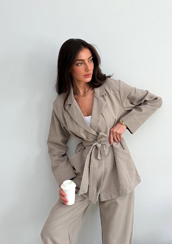 Костюм піджак жакет з поясом і штани Тканина : льон /бавовна преміум якість Розмір : s m l xl Є різні кольори ,жакет та штани в продажу є окремо