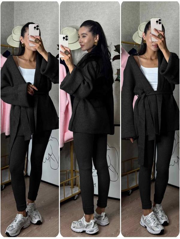 НОВИНКА🇺🇦 🔸Комплект (кардіган+легінси+пояс) ▪️Модель: 1660 ▪️Ткань: ангора вязкая Турция ▪️Размер: 42-44 и 46-48 ▪️Цвет: черный, шоколад, графит, бежевый, барби, черный 🏷Цена 995 грн🔥 Супер качество по низкой цене🔥 💬Тепленький, очень удобный и стильный вязаный комплект: Удлиненный кардиган оверсайз и леггинсы высокой посадки из качественной мягкой стрейч вязки. Пояс в комплекті. Идеальная база для прохладных дней🍂 ПАРАМЕТРИ Кардиган (one size) Длина 80 см ОГ 120 см Рукав от ворота 80 см Леггинсы (хорошо тянутся) Длина 104 см / 106 см ОБ 89-95 см / 95-102 см ОТ 62-68 см / 70-76 см