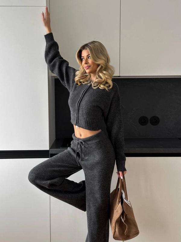 Графітовий в’язаний сет із м’якої пряжі: короткий джемпер на блискавці та широкі штани з комфортною посадкою. Ідеальний варіант для прогулянок та щоденного стилю. мод. 315-872 Фото реал 🤍 Матеріал : 76% акрил , 24% полиестер Виробник : Туреччина Розміри : хс/с , м/л Кольори : графіт