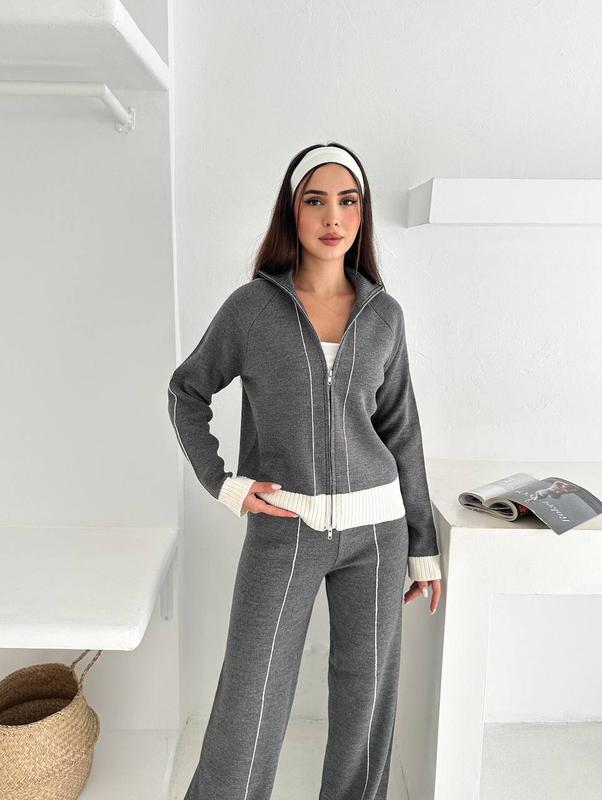 Повседневный костюм выполненный из трикотажного материала. Объемный верх с широкими брюками с эластичной вставкой в поясе. Модель легко сочетается с массивными ботинками или кроссовками, а поверх можно накинуть oversize пальто. • Размер универсальный 42-48 • Цена 1900 грн • Джемпер: Длина 56 см Ог 100 см Рукав 73 см • Штани Длина 111 см От 50-86 Об до 110 см 66037кю