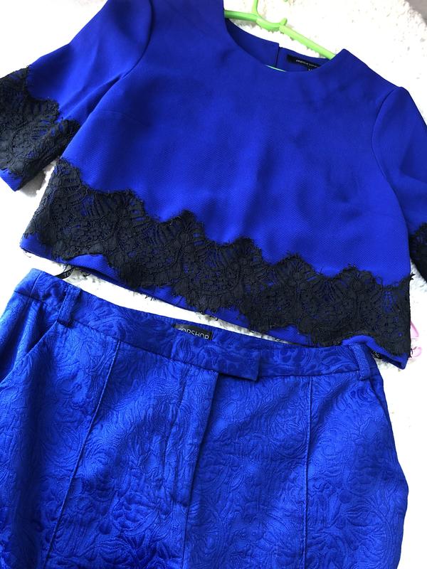 Блуза цвета кобальт. С гипюровым декором S/M 44. 🌸Длина по спине 44см. Ширина под руками 45см. Спереди выточки на груди. Брюки наглядно в качестве декора(!), для создания предполагаемого образ. Без наложенного платежа.