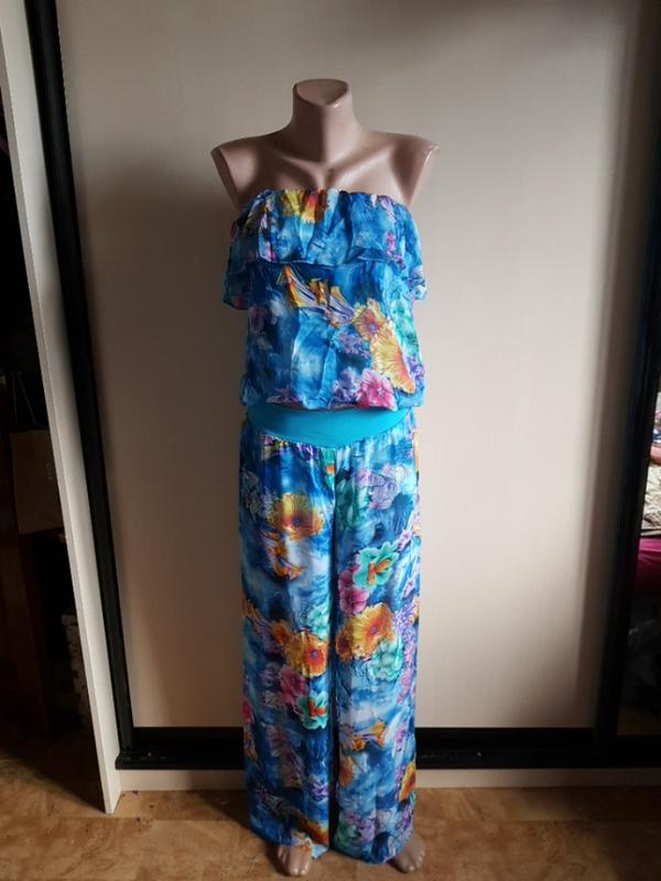 новы топ длинна 40см пог 28см резинка брюки под ними шорты пояс 35см длинна 102см длинна внутр шва 78см на одной штанины по шву порвано ,стрелка вверху.в цене учтено