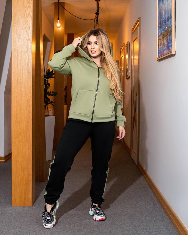 🔥NEW🔥НОВИНКА🔥 ❄️Теплый спорт костюм-прогулка Мод. 310 Хорошее качество 👌 Ткань: трехнитка (флис) 4 цвета: голубой, оливка, пудра, бежевый. Размеры и замеры: 48-50: ог 116 об 120 см. 52-54: ог 124 об 128 см. 56-58: ог 132 об 134 см. Длина брюк 103 см по внешнему шву, по внутреннему 82 см. Длина кофты 65 см. 🏦Цена 745 грн. На модели размер 48-50