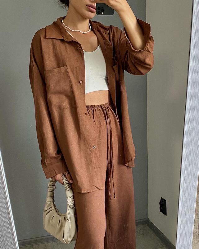 • Костюм, сорочка та штант 100% льон,приємний до тіла 🫶 • У двох кольорах: коричневий та молочний 🤎🤍 • Розмір : Xs, S, M, L🫶