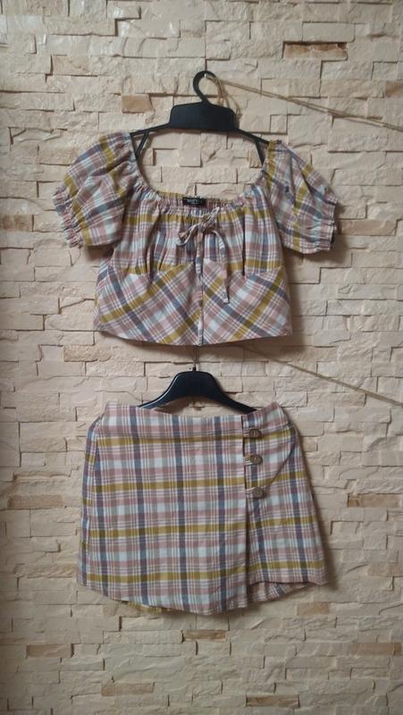 Легкий молодежный костюм 10 размер, новый. Юбка - шорты и топ - выглядит очень круто. смотрите все свои объявления