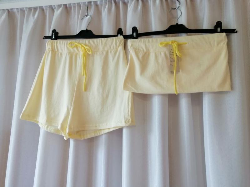 літній костюмчик топ і шортики тонкий приємний до тіла трикотаж у двох кольорах ніжно-рожевий і блідо-жовтий розмір єдиний універсальний тканина тягнеться топ на шнурівці верх стягується за вашими параметрами заміри ширина напівобхват верху 34 см тягнеться на 50 см напівобхват грудей 39 см тягнеться на 48 см довжина топа 20 см шортики напівобхват талії 33 см тягнеться на 50 см Також є шнурівка тягнеться за вашими параметрами посадка спереду 36 см ззаду 43 сантиметри напівобхват стегон 51 см тягнеться на 70 см довжина шортиків 35 см допускаю похибку вимірах плюс-мінус 1 см відправляю безпечною оплатою з можливістю огляду та примірки на поштовому відділенні Без ризику для покупця