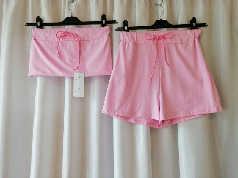літній костюмчик топ і шортики тонкий приємний до тіла трикотаж у двох кольорах ніжно-рожевий і блідо-жовтий розмір єдиний універсальний тканина тягнеться топ на шнурівці верх стягується за вашими параметрами заміри ширина напівобхват верху 34 см тягнеться на 50 см напівобхват грудей 39 см тягнеться на 48 см довжина топа 20 см шортики напівобхват талії 33 см тягнеться на 50 см Також є шнурівка тягнеться за вашими параметрами посадка спереду 36 см ззаду 43 сантиметри напівобхват стегон 51 см тягнеться на 70 см довжина шортиків 35 см допускаю похибку вимірах плюс-мінус 1 см відправляю безпечною оплатою з можливістю огляду та примірки на поштовому відділенні Без ризику для покупця