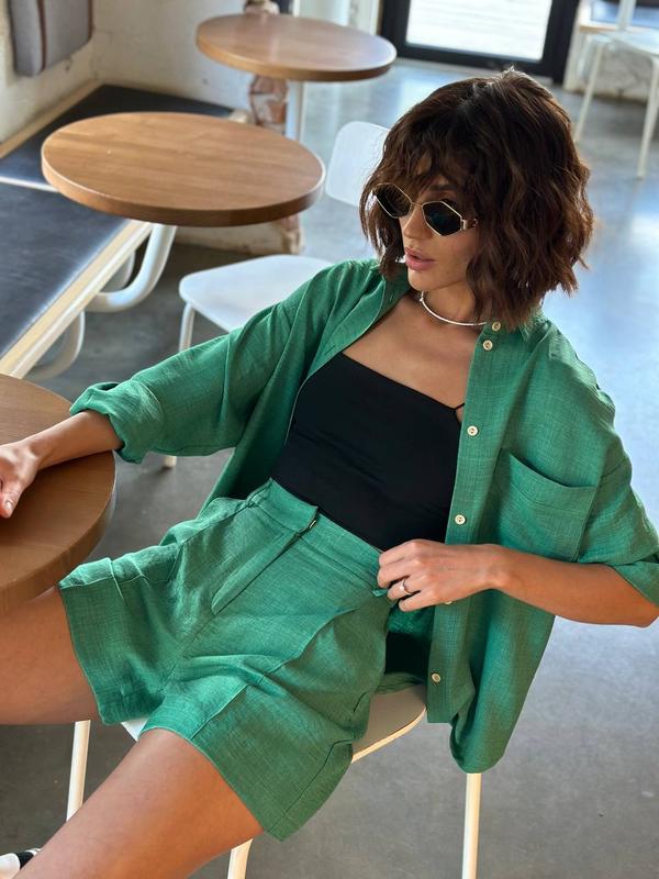 134/23 стильный костюм-двойка рубашка и шорты из льна. идеальный комплект для жаркого лета...
