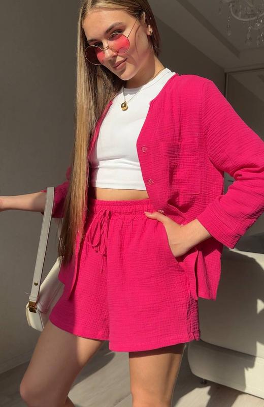 Костюм Мод: 4957-725 Размер: 42-46, 48-52 Ткань: муслин Цвет: малина, белый