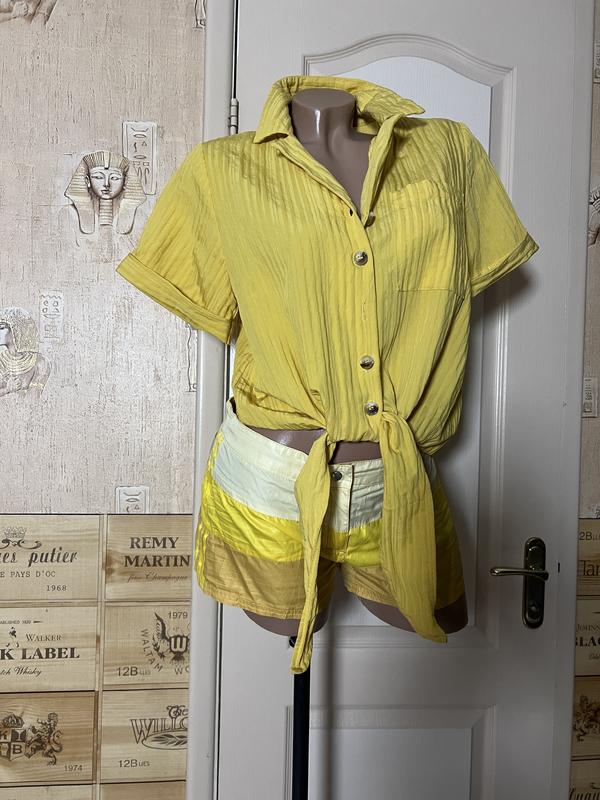Костюм отличного качества, собранный , верх ткань натуральная, кофточка свободного кроя на пуговках, можно завязывать , шорты сзади на резиночке, спереди на молнии , шорты оригинал adidas
