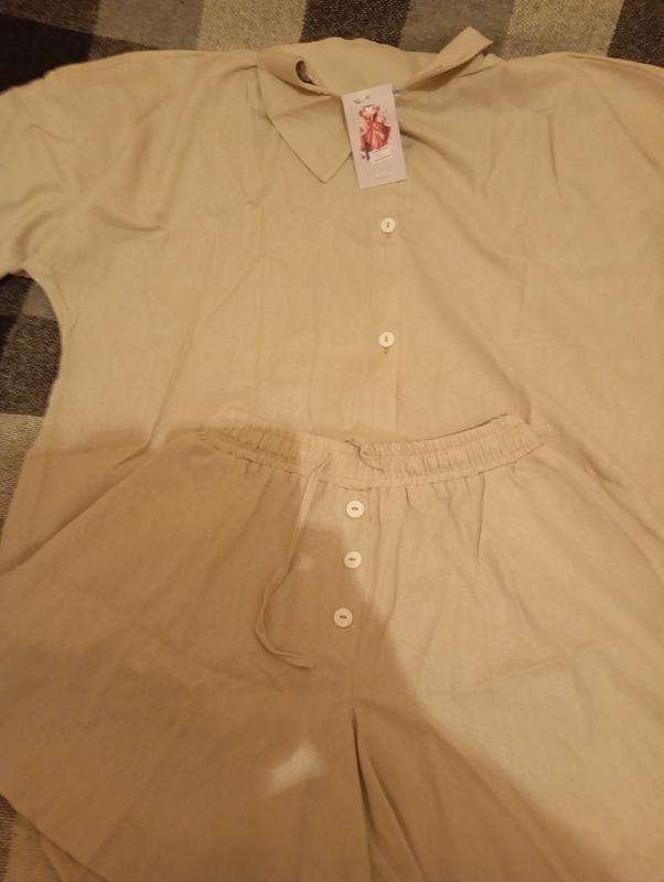 Женский летний льняной костюм, рубашка с длинным рукавом+ шорты