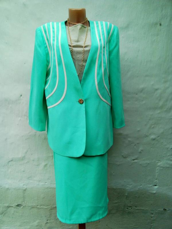 Красивый,нарядный, презентабельный бирюзовый костюм,пиджак,юбка,большой размер.