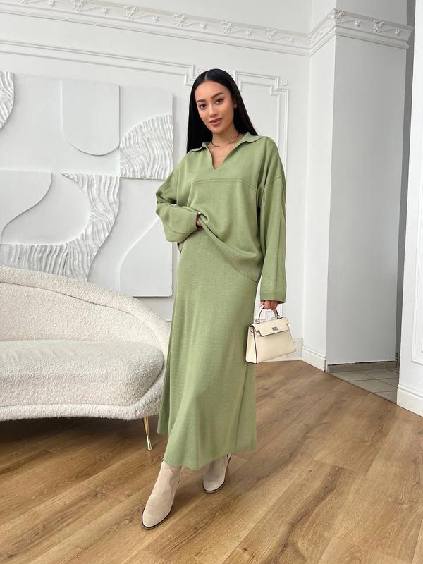 🖤Костюм, который подарит легкость и чувство уверенности ☘️Цена 2450 грн ☘️Размер S-M,L-XL ☘️Тканина : 100% бавовна Качество люкс Длина юбки -86 см ОТ в размере см до 72 см, в мл до 80 см Плечо -24 см Длина рукава -50 см Ширина по грудях в см -66 см Длина кофты -56 см ☘️Цвет оливка, бежевый, шоколад, графит