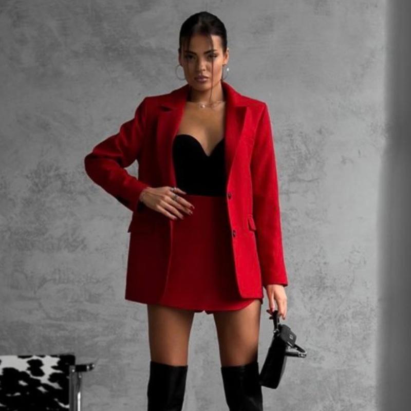 ● Комплект (пиджак+юбка) ● Артикул : G1463/580 ● Цвет: шоколад, черный, молоко, красный ● Тканина : костюмка ● Размер : 42-44, 44-46