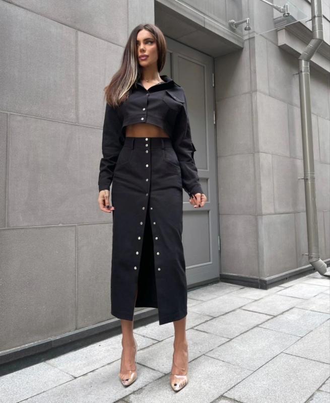 Укороченная куртка и юбка миди 4 цвета костюм жакет юбка мыды