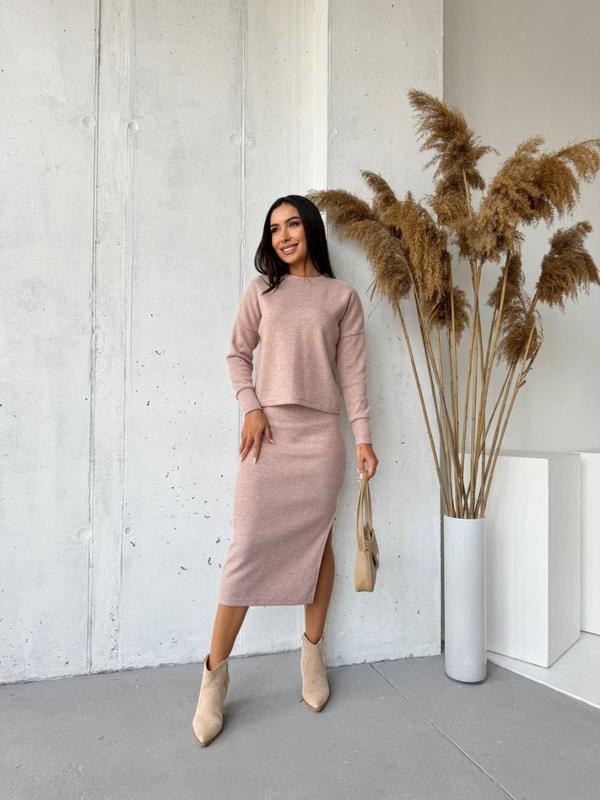 ❤️🔥Теплый и очень стильный костюм, кофта и юбка миди с разрезом сбоку. 🩶Модель: 499. Размеры: 42-44, 46-48, 50-52. В ростовке 3 единицы. Ткань: ангора вязкая Турция. Цвета: черный, серый, розовый, шоколад. ✔️Замеры: Кофта: ▫️Обхват груди: (42р-44р)102см (46р-48р)110см (50р-52р)128см ▫️Обхват талии (42р-44р)94см (46р-48р)104см (50р-52р)112см ▫️Длина изделия (42р-44р)53см (46р-48р)55см (50р-52р)57см ▫️Рукав от горловины (42р-44р)66см (46р-48р)68см (50р-52р)72см Юбка: ▫️Обхват талии (42р-44р)62-84см (46р-48р)70-92см (50р-52р)72-94см ▫️Обхват стегон (42р-44р)84см (46р-48р)98см (50р-52р)100см ▫️Длина (42р-44р)82см (46р-48р)84см (50р-52р)86см