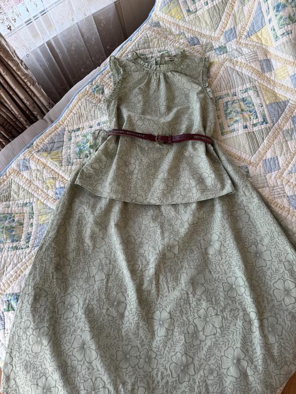 Новый костюм (длинная юбка + блузка без рукавов), выполненный скорее всего из хлопка (возможно с вкраплениями), сказать 100% не могу. Бирки со составом нет. Страна производитель-Турция. Поши очень качественный. На ткани очень красивые бархатные цветы, добавляют текстуру и шарм. Цвет нежно оливковый ( камера не передает точно). Размер указан 12 (европейский), подойдет на М, L, небольшой XL. Замеры блузы: ПОГ - 51 см, ПО низу блузки- 57 см. ПОТ юбки в спокойном состоянии- 39 см, С помощью резинки максимально - 44 см, ПОС - 72 см. Заказа принимает по предоплате на карточку или полной оплатой, высылая по почте. Жду ваши вопросы, с радостью ответь)