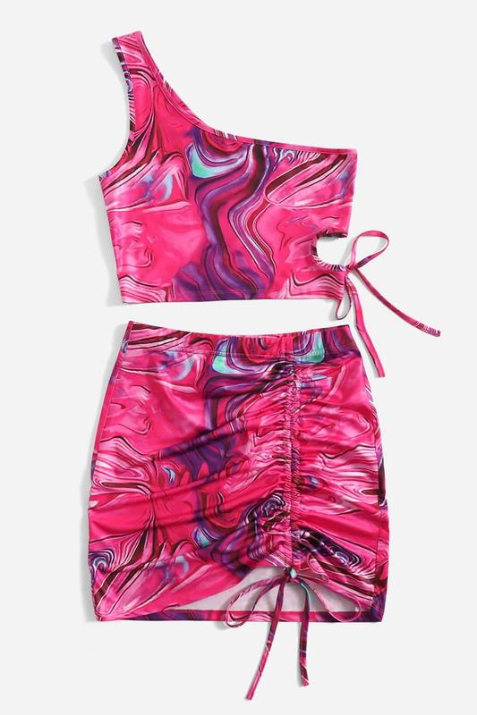 Облегающий комплект кроп-топ и юбка-мини "shein" с мраморным принтом, eur38, м.