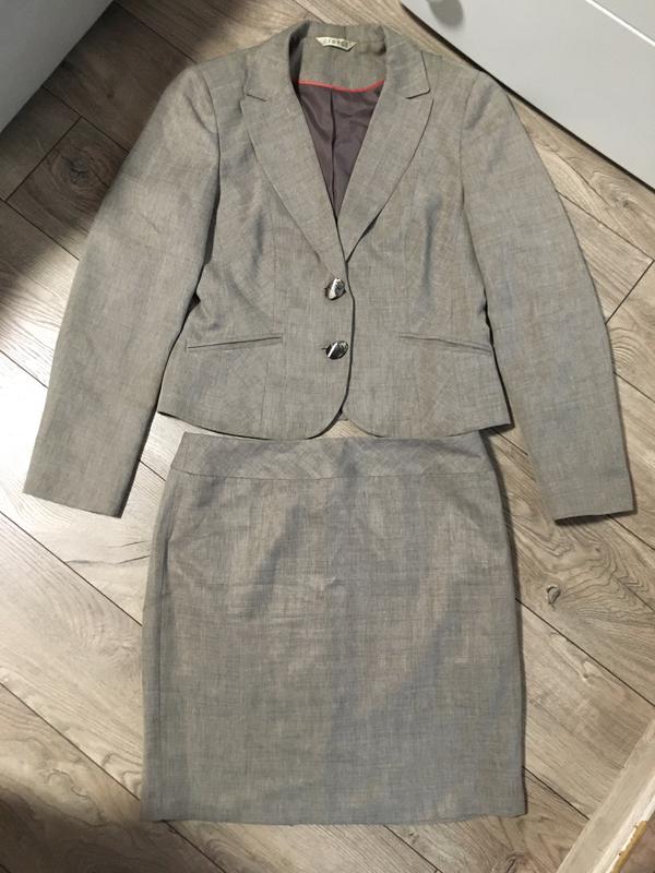 Очень хорошего качества костюм в деловом стиле, на работу очень хорошо, цвет серый, красивые пуговицы, никаких изъянов! Размер лучше по замерам, 40 по бирке вроде идет на S или М