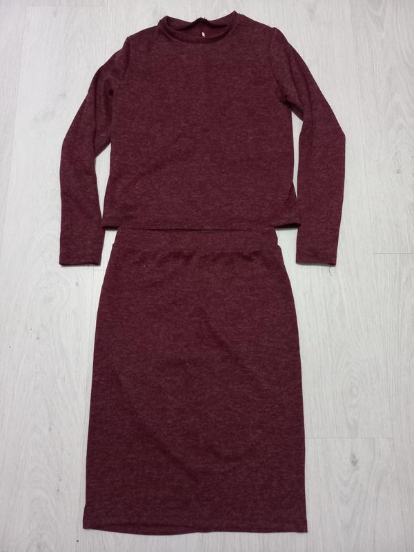 Тёплый костюм, без бирки. Замеры: кофта ОГ 90, плечи 35, рукав 60, длина 50, юбка пояс 66, длина 55. Пересылка по предоплате Смотрите другие объявления в моём профиле-много качественных вещей по низким ценам