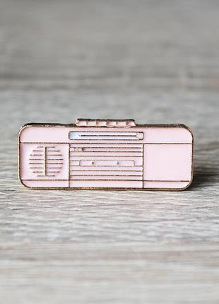 Значок / пен металлический самолет розового цвета с белыми вставками